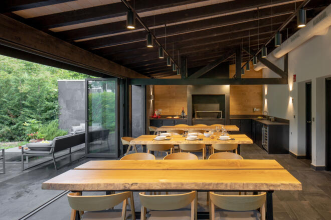 La luz natural desde un primer momento se consideró muy importante. Y teniendo en cuenta que tres de los huecos de fachada dan a la amplia Avenida de Las Arenas; se dotó a la instalación de grandes cristaleras, con carpintería de madera en gris y madera de arce.