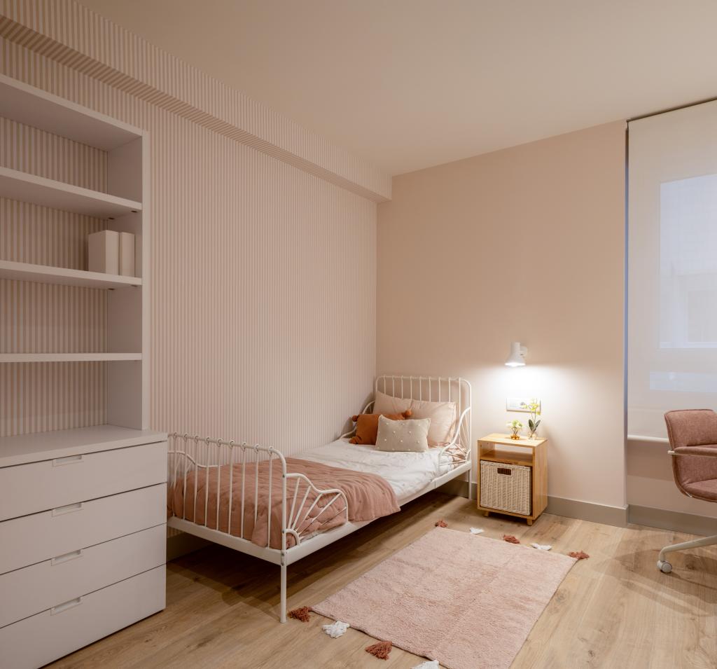 Este enfoque de diseño no solo aporta armonía estética, sino que también tiene beneficios prácticos: los espacios se perciben más amplios, ligeros y relajantes, ideales para la vida diaria de una familia.