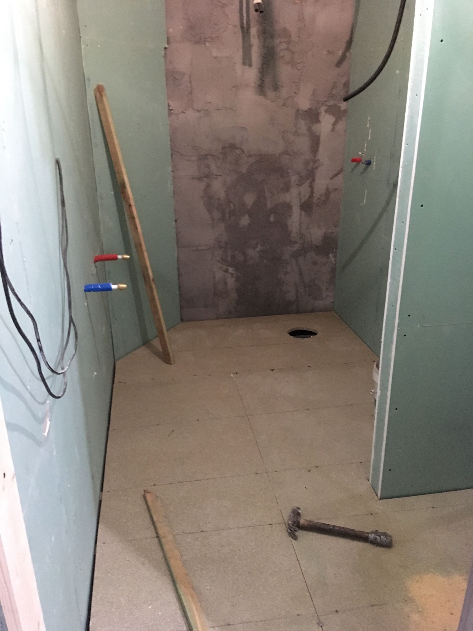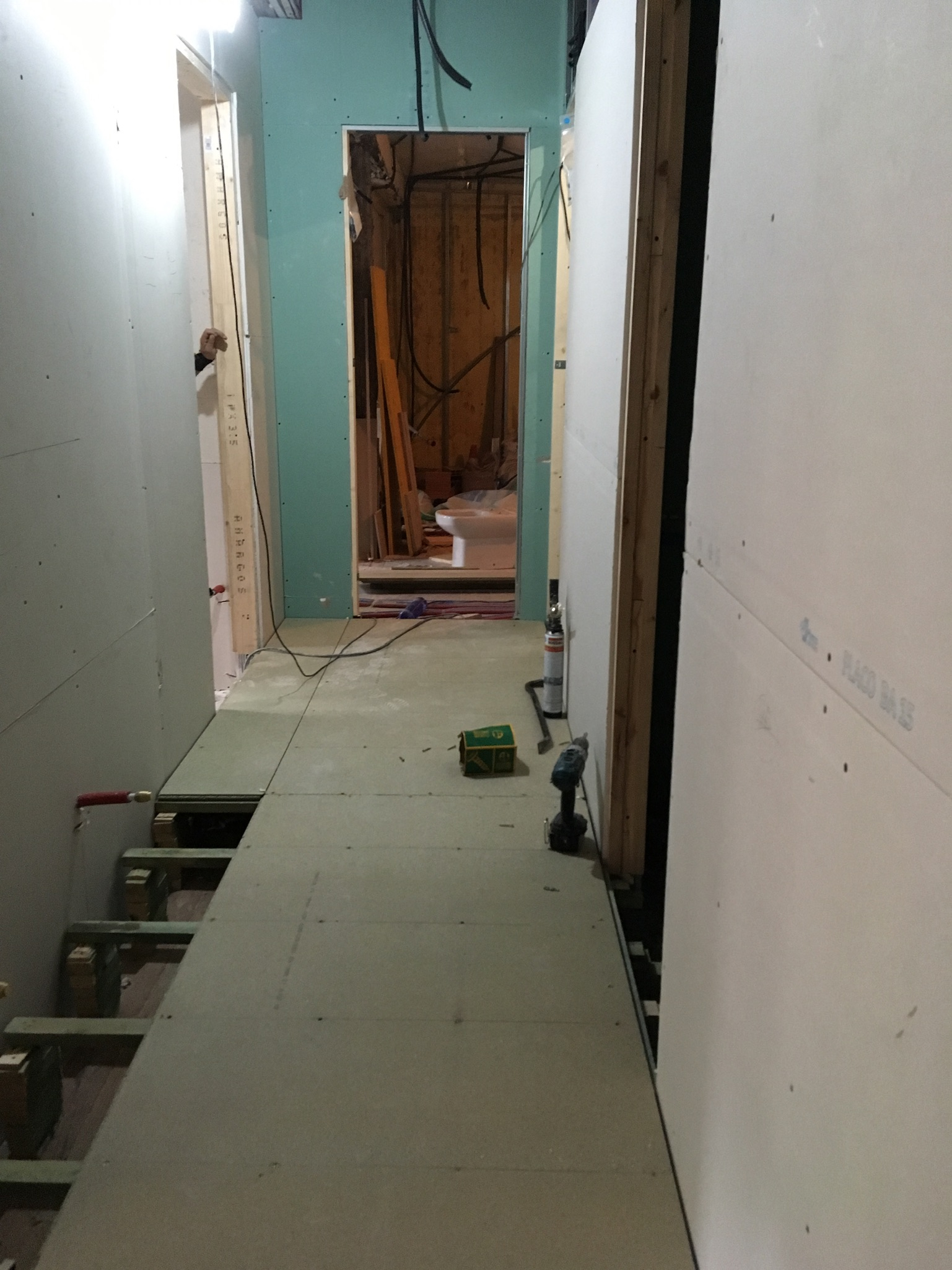 Es decir, teníamos que darle la vuelta a la vivienda. El problema es que la distancia a la bajante en el lugar donde queríamos ubicar los baños para que quedase perfecto, era bastante grande y lo que hicimos fue recrecer parte del piso (tenia techos muy altos) desde el pasillo.