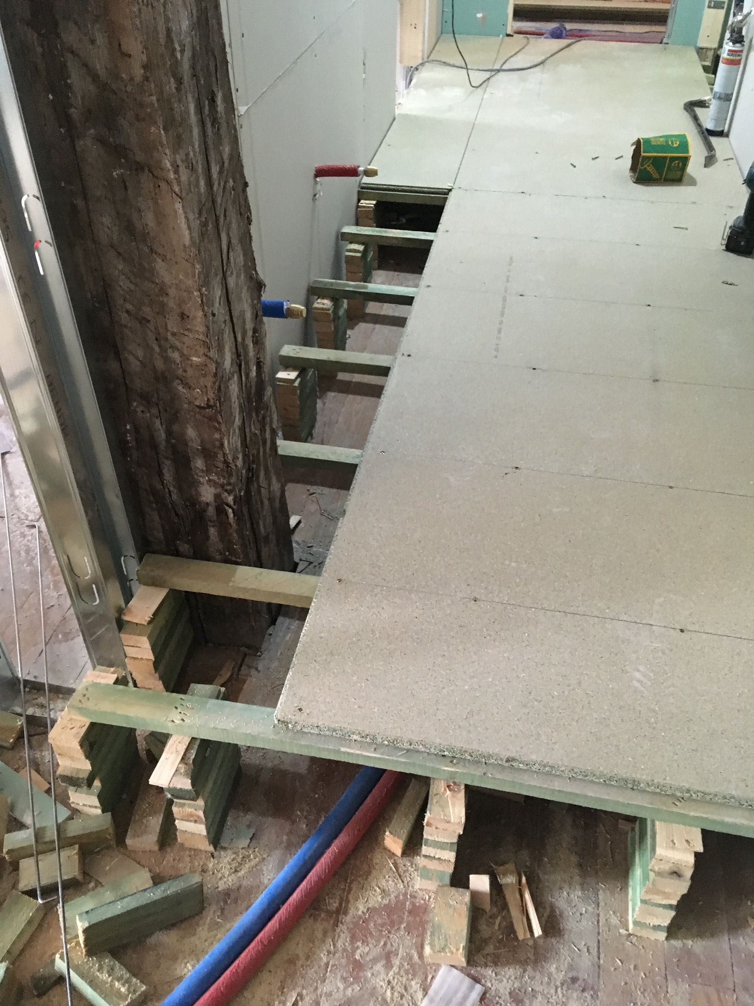 Recrecimos el escalón para dejar paso a las instalaciones del baño y calefacción. Hoy como os digo, apenas se nota.