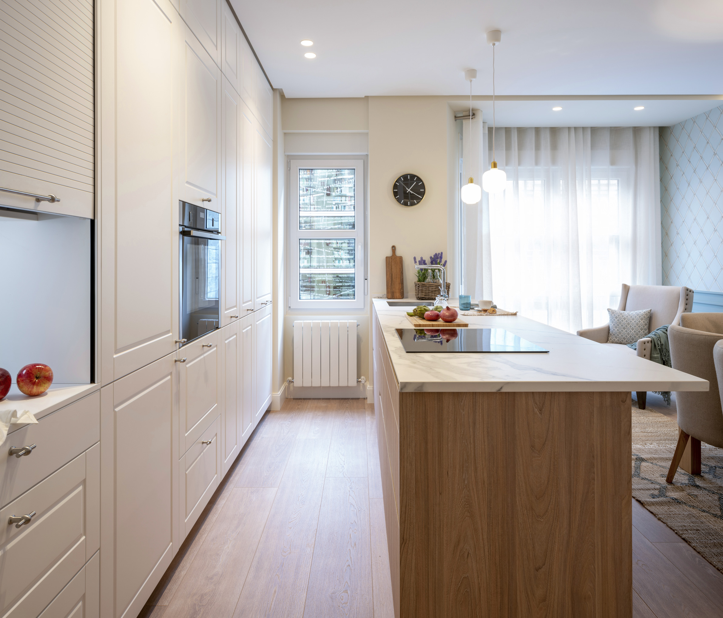 Porque es una historia curiosa y porque nunca hay que rendirse cuando vemos la casa que esta situada exactamente donde la necesitamos. Me encontraba de vacaciones en el Sur, cuando llamaron a SUBE unos posibles clientes, dudosos de comprar una vivienda, situada en el enclave justo que ellos necesitaban, pero que presentaba múltiples dificultades para los espacios que ellos querían; Salón con cocina y comedor semi integrados, habitación para el niño y baño independiente y una dormitorio principal con vestidor y baño en suite. No se que vi en ellos, que me inspiraron mucha confianza y toda la ilusión que tenían en que aquel piso fuese su hogar mediante una reforma integral en profundidad.