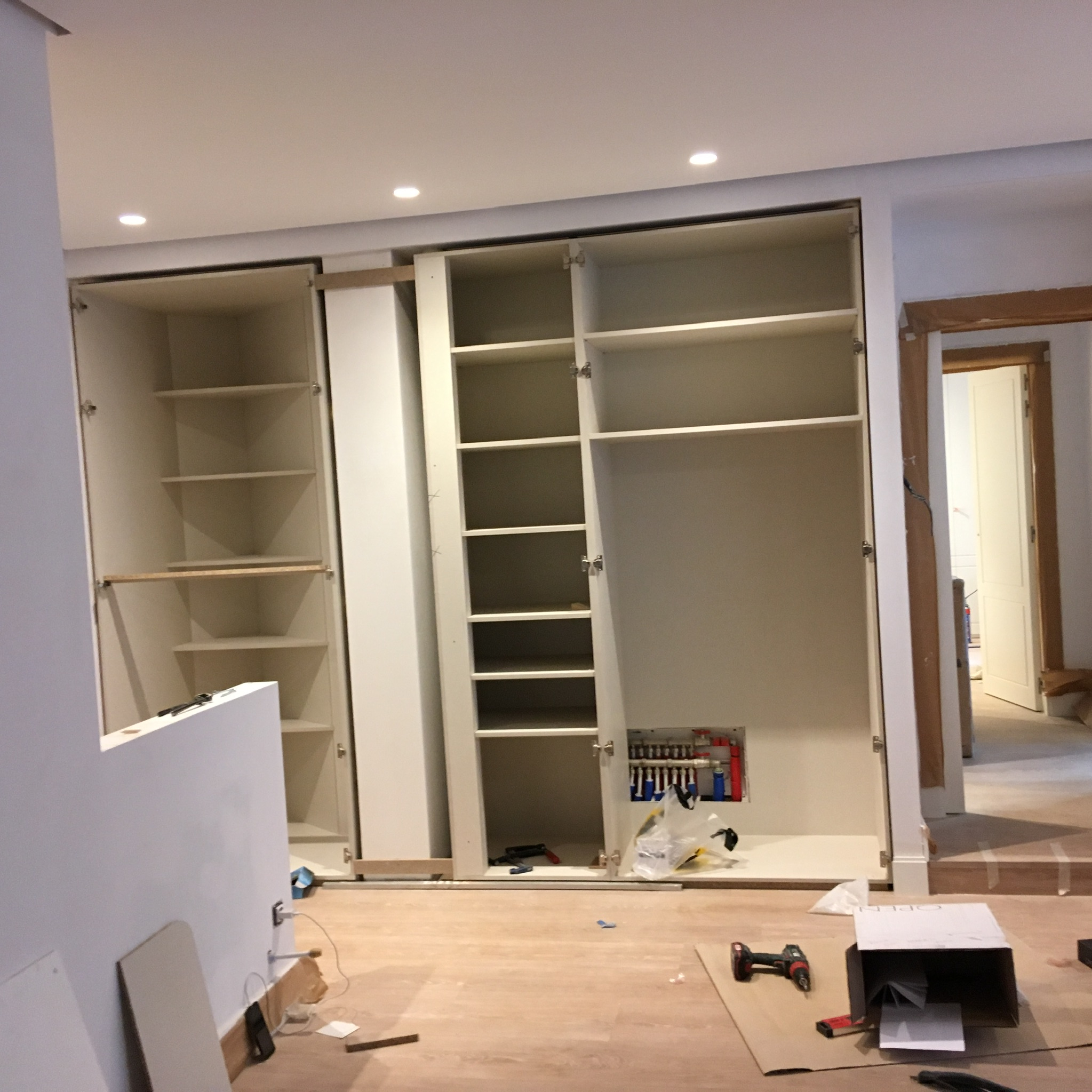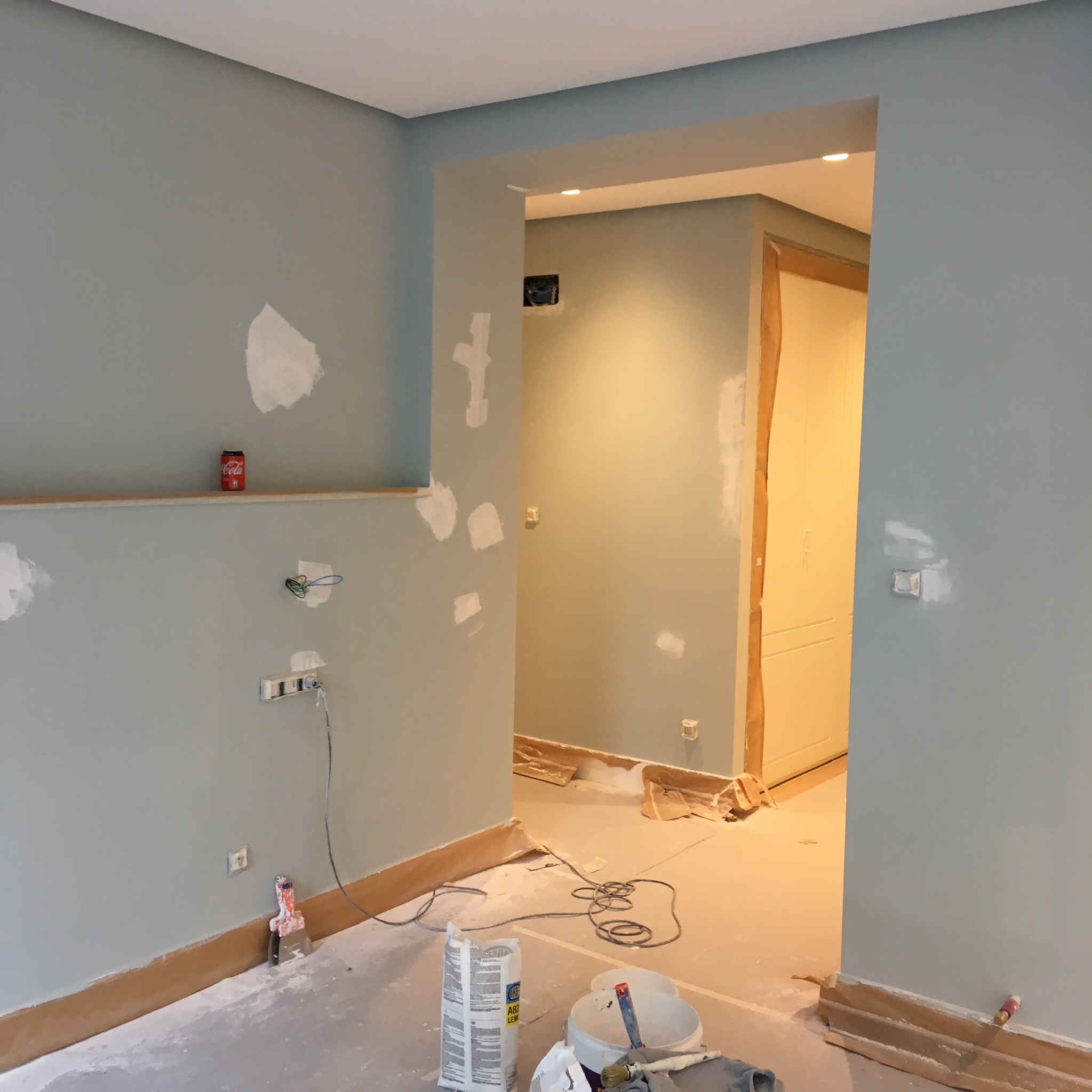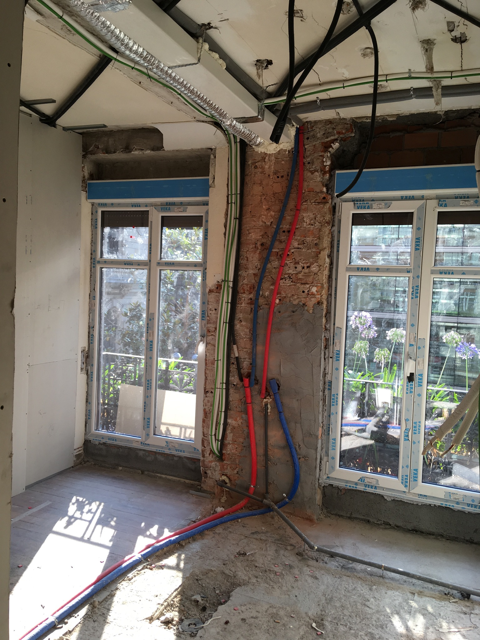 Pero no perdimos la calma, avisamos a los propietarios de cual era la situación, procurando no alarmarles y haciéndoles ver que estaban en las mejores manos, para con cuidado, mucha prudencia y despacito, poder solucionar todo aquel desaguisado. Ellos siguieron a lo suyo y nosotros a lo nuestro; dejar terminada una vivienda lo mas cómoda y segura posible, bien aislada, bonita decorada y con las instalaciones funcionando.