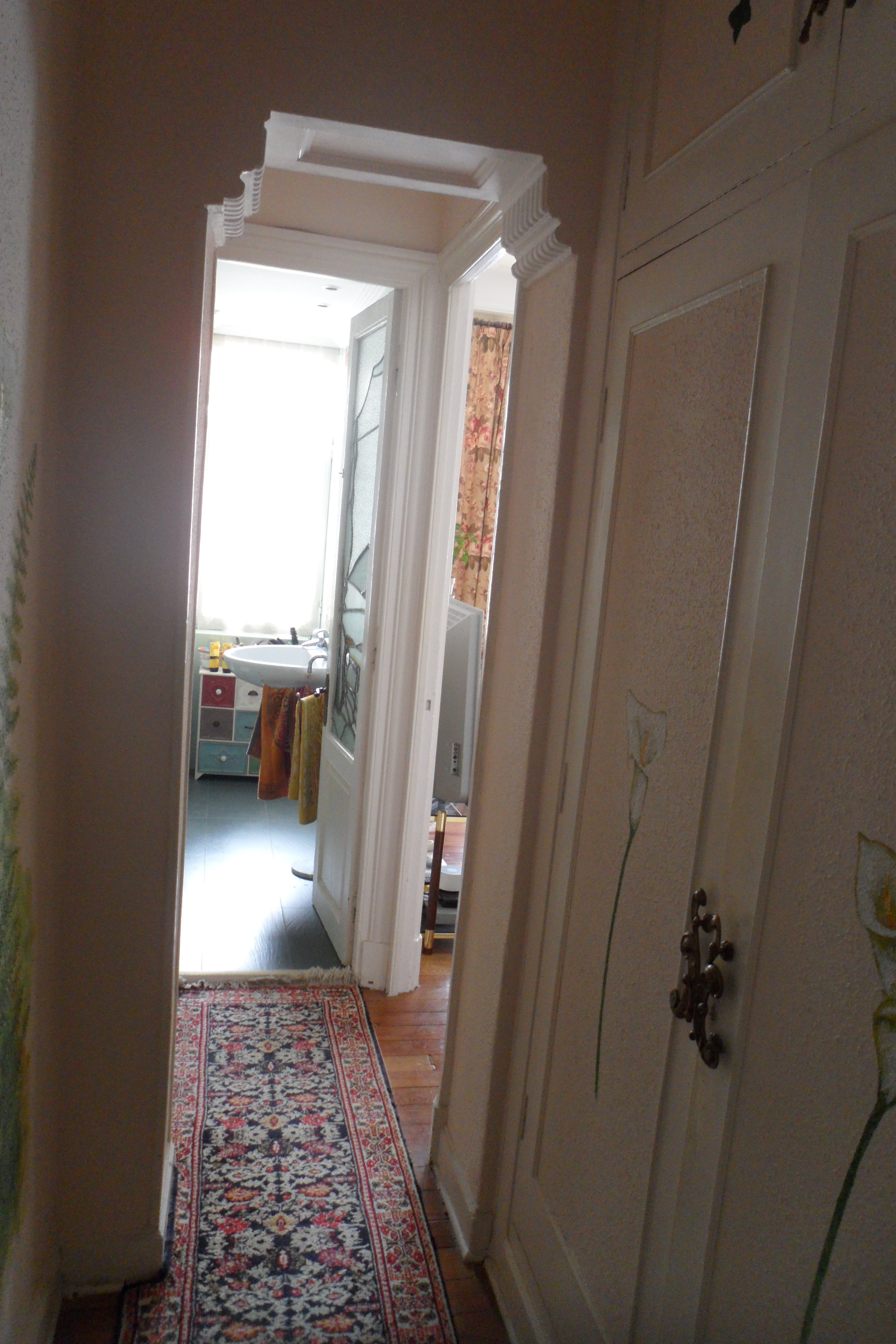 El piso en su estado actual, tenia una distribución complicadísima y algunas habitaciones ni siquiera tenían ventanas. Disponía de unasola bajante que se encontraba precisamente en el lado de la fachada que seria el que por lógica deberíamos de aprovechar para dar luz a toda la vivienda, salvo los baños. Algo siempre hay que sacrificar.
